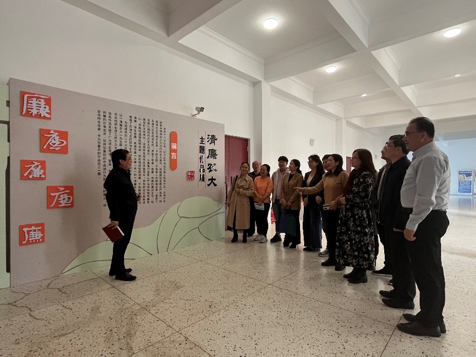 会后,全体参会人员前往校友会堂一楼展厅集体参观“清廉农大”主题作品展。