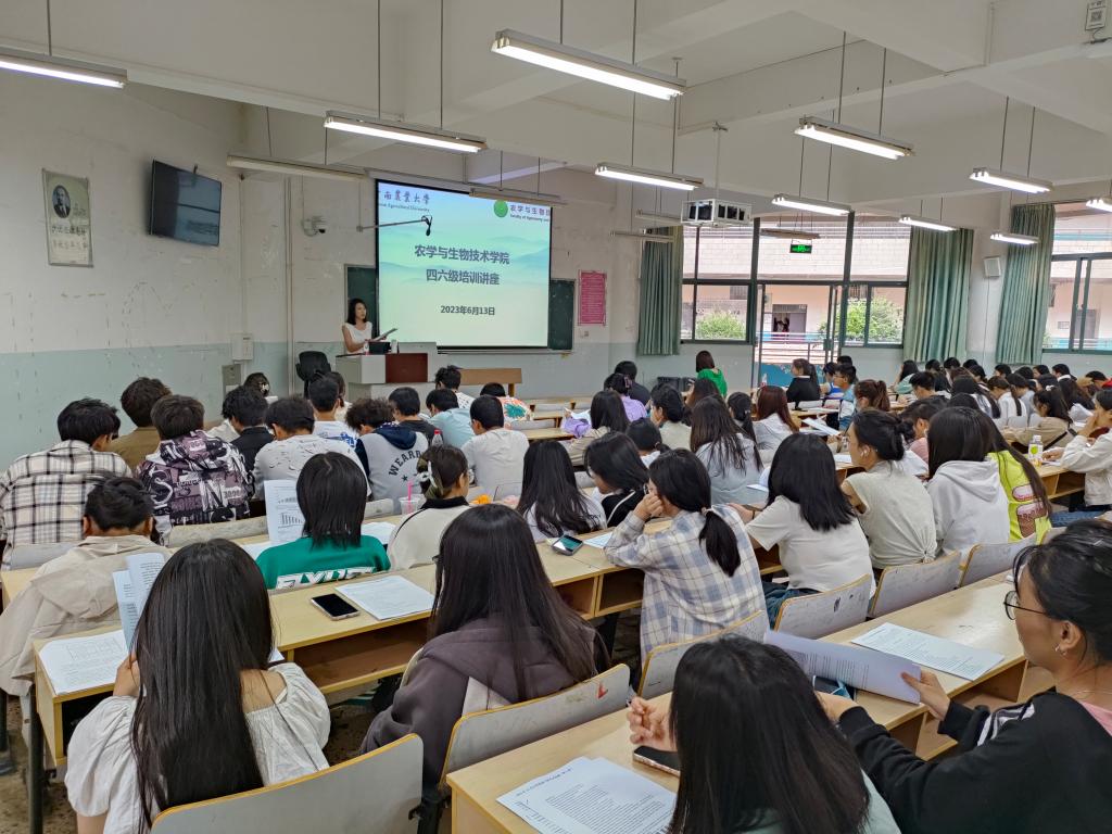 2023年6月13日,437437必赢国际网址邀请海天考研培训宋雨曈老师在尚农楼1-16为150余名学生进行了大学英语四六级考前辅导。