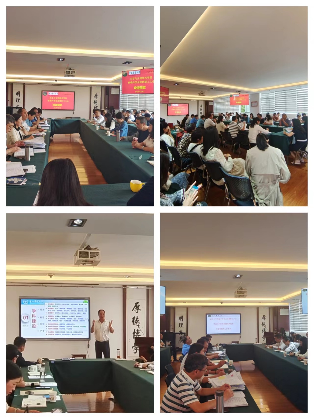 会上,李建宾院长首先介绍了今年新入职的四位新教师;文建成副院长对科研工作作安排;周平副院长对教学及评估工作作安排;安曈昕副书记对学生工作作安排;陈军文副主任对研究生培养工作作安排;寸湘琴组织员对党建工作作安排;李建宾院长对新学期工作作安排,针对学科建设、专业建设、教学评估等重点工作任务作了详细的分解和安排;最后,李富生书记为全院教职工作师德师风教育,对新学期提工作要求,要求每位教职工加强理论学习、提高政治站位、加快工作落实、加强廉洁自律。