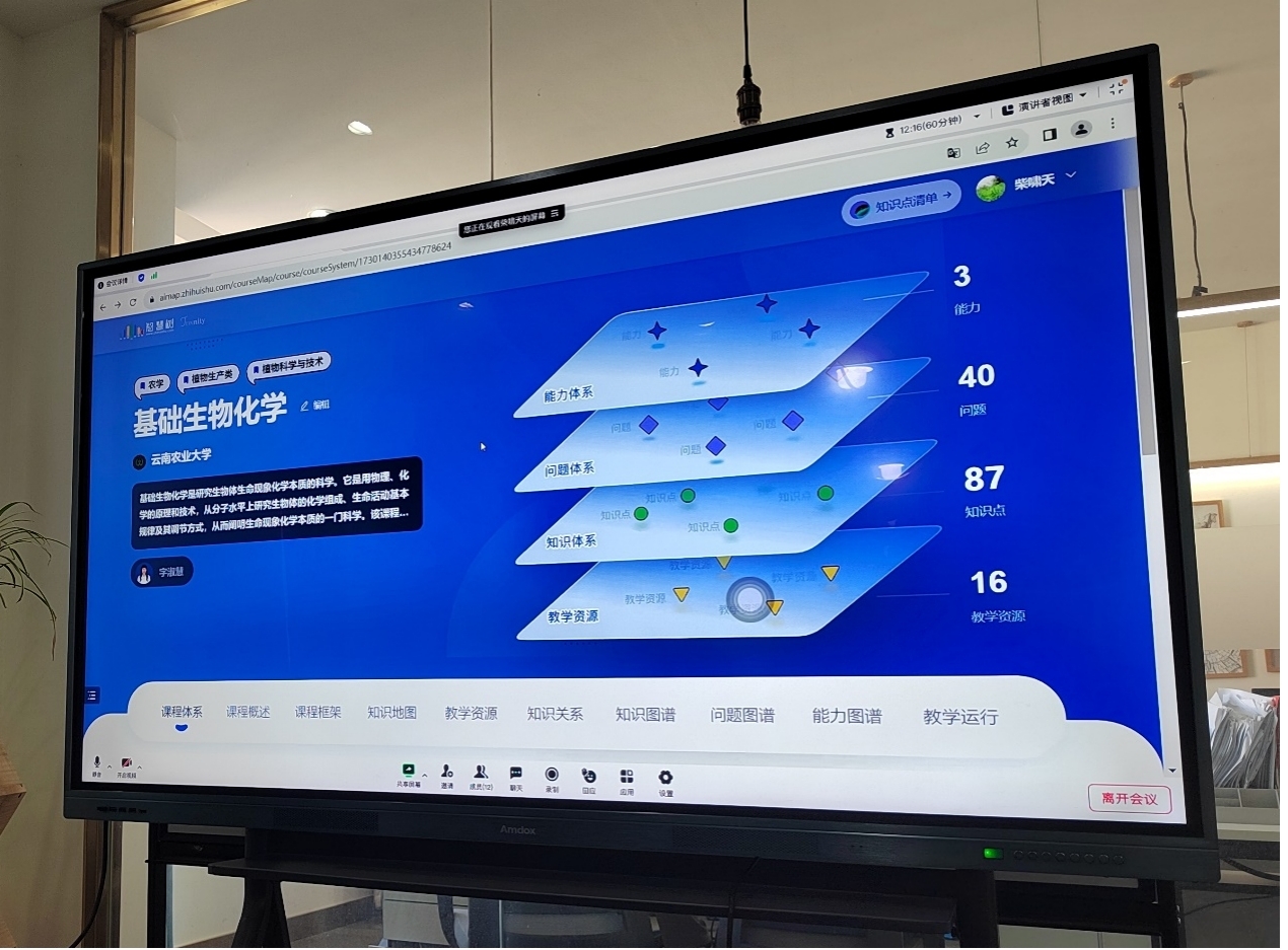 为全面提高人才培养质量,加强信息技术应用,强化数字赋能,着力打造“数字化”在线精品课程,在生物技术国家一流专业建设专项经费的支持下,437437必赢国际网址与智慧树技术平台签约,建设多门知识图谱课程。借此良机,基础生物化学黄大年式教师团队负责人字淑慧教授,邀请智慧树项目负责人柴啸天技术顾问,于2023年12月4日16:00在云南农业大学智慧树办公室召开 “《基础生物化学》数字化课程建设启动会”,课程组全体老师通过线上和线下参加了会议。