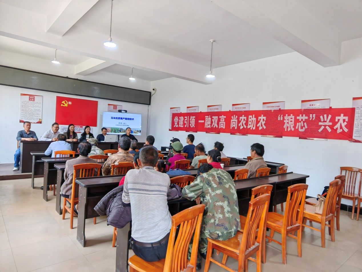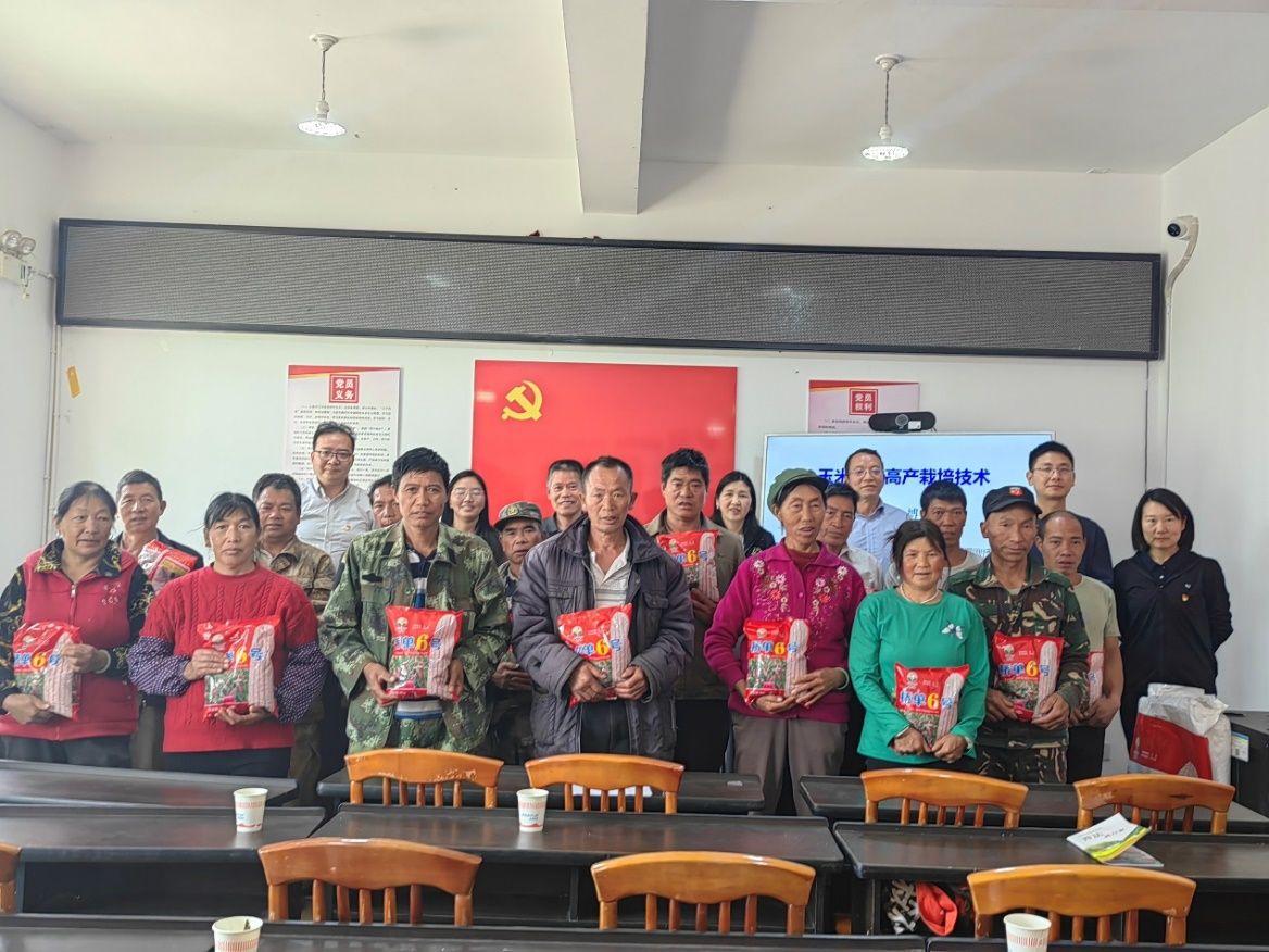 接着,学院党员教师周锋博士为农户开展了科技服务,为当地农户详细讲述了《玉米优质高产栽培技术》。农户纷纷表示受益匪浅,愿意采用周老师的栽培方法和技术。学院现场向农户发放了玉米新品种150公斤。