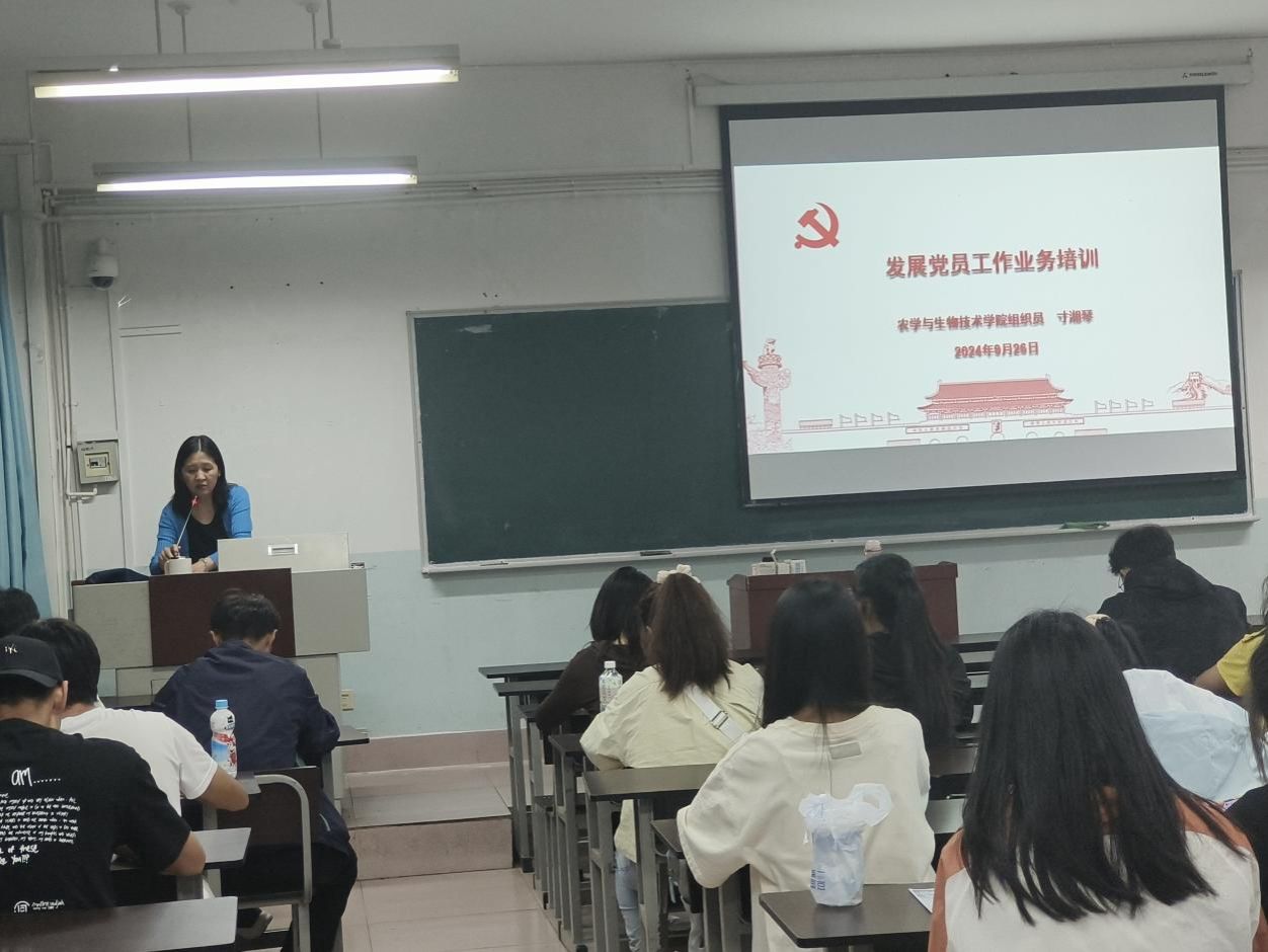 为培养高素质的党务工作人员队伍,进一步提高学院发展党员工作质量,学院党委于2024926日在尚农楼3-15教室召开了发展党员工作业务培训会,由学院党委组织员寸湘琴对学生支委、培养联系人、入党介绍人、党建先锋队员等进行了业务培训。