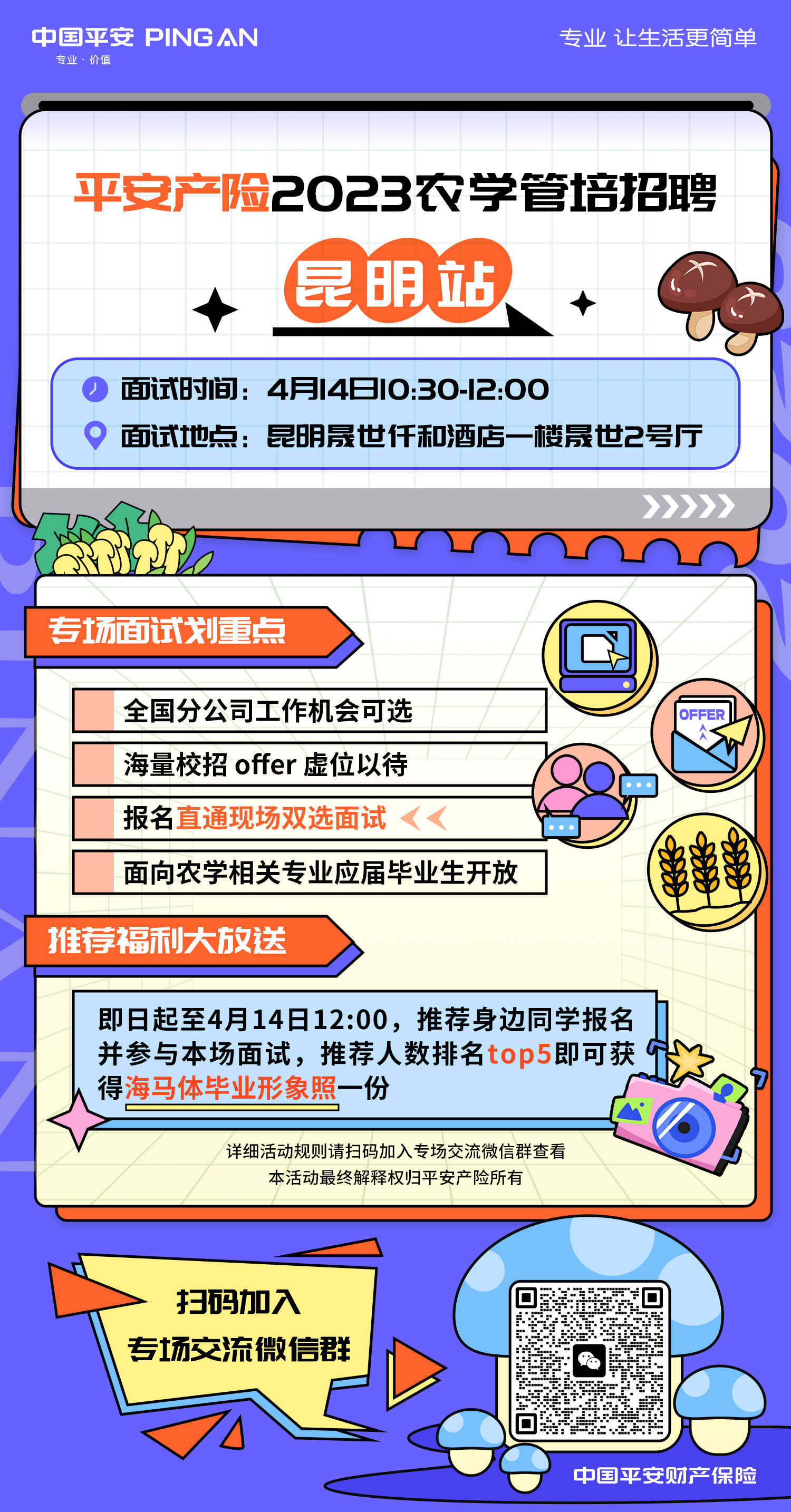 【招聘信息】平安产险2023农学管培招聘-437437必赢国际网址站