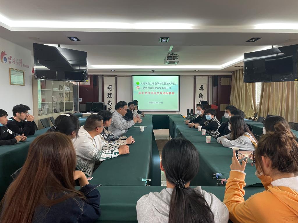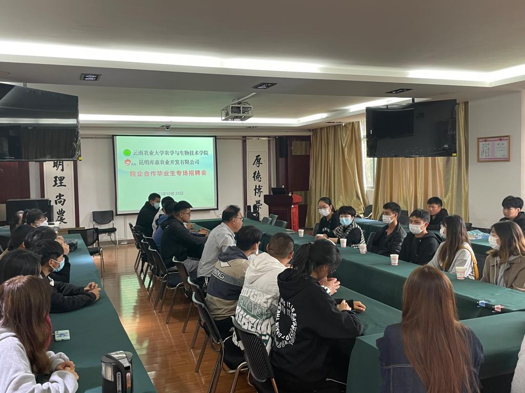 2022年10月25日,必赢合作企业昆明库森农业开发有限公司进行“院企合作毕业生专场招聘会”,会议由学院副书记安曈昕老师主持。会上安老师与昆明库森农业开发有限公司负责人赵朝琼进行了详细会谈,逐一了解企业的用工需求、招聘要求、及提供的工资待遇等方面问题。同时还有必赢40名应届生参会,会上昆明库森农业开发有限公司员工(必赢2018级学生)与40名应届生进行了热烈讨论与交流,一一回答同学们关心的各类问题,切实解决同学们的疑问与要求。