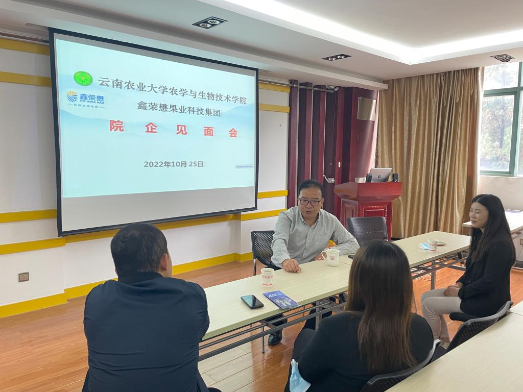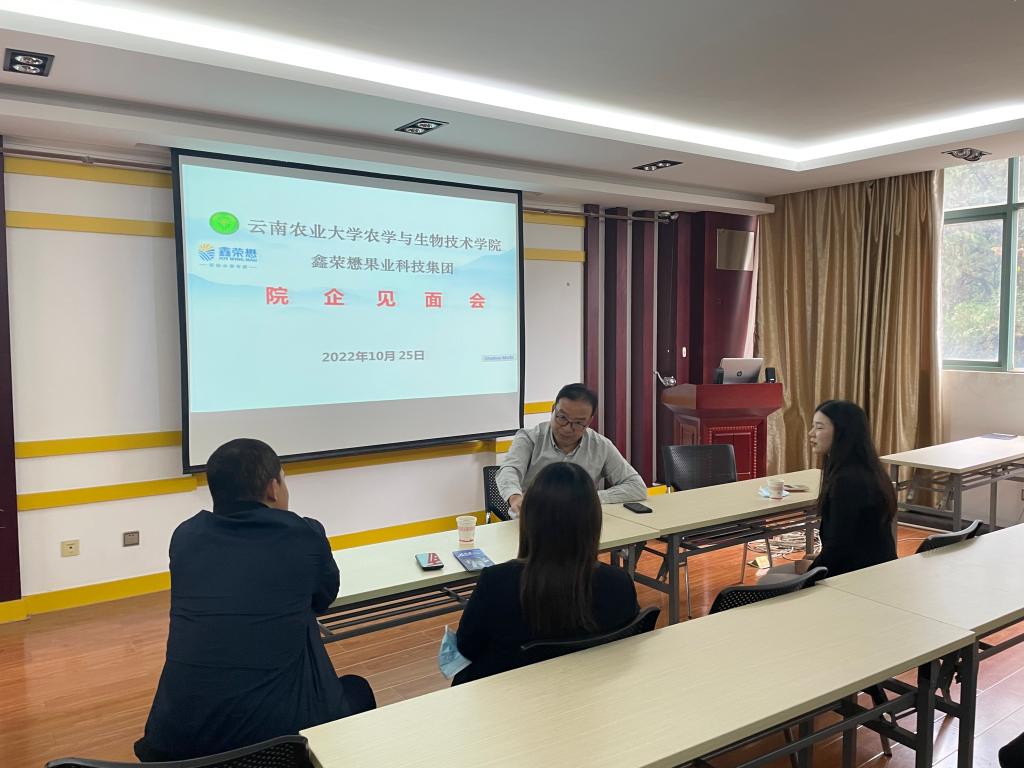 2022年10月25日,必赢安曈昕副书记与鑫荣懋果业科技集团人事林经理进行“院企见面会”,会上安老师热烈欢迎鑫荣懋果业科技集团的到来,详细介绍必赢学生专业、技能、生源等各方面情况,同时向企业了解用工需求、薪资待遇、福利保障等方面问题。企业表示以后将进一步加大与农学院的合作力度,争取早来、多来必赢进行招聘工作。