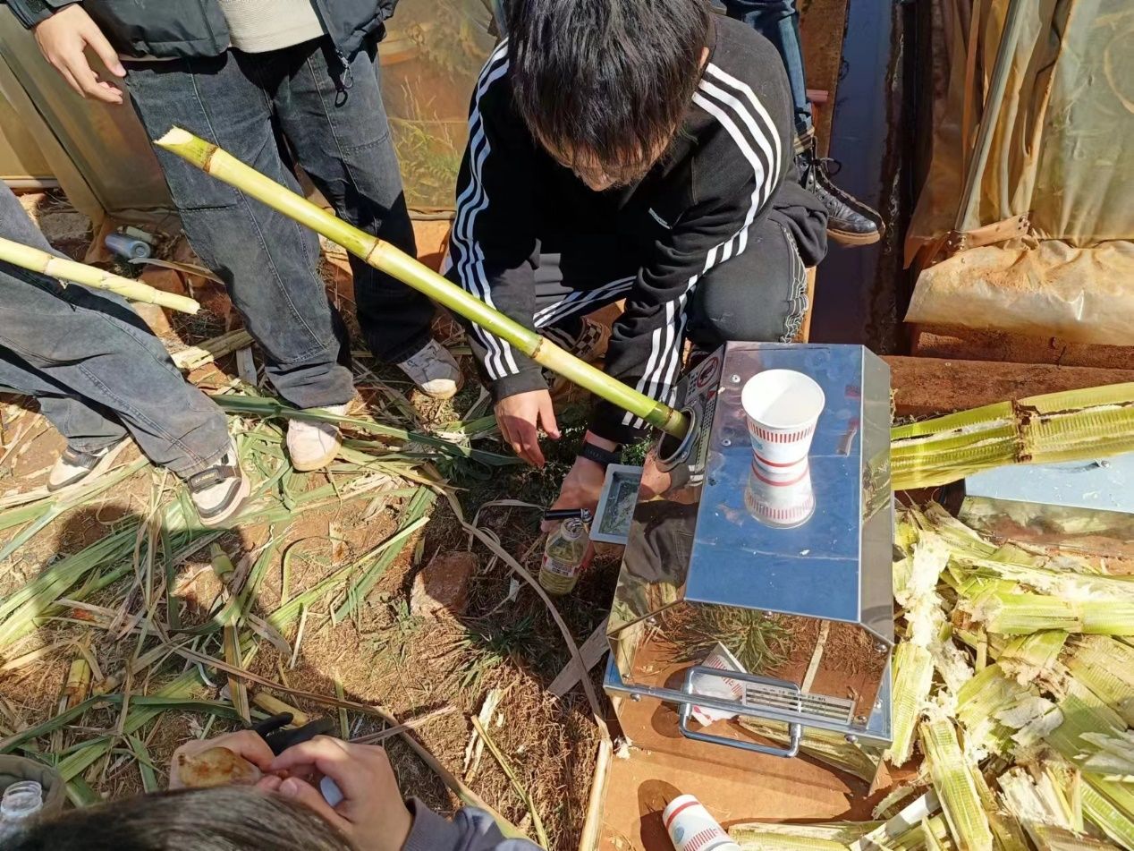一分耕耘一分收获,一次劳动一次成长。砍收结束,老师拿来了榨甘蔗的机器让同学们感受收获的“甜蜜”。甘蔗汁随着机器的转动涓涓流出,不一会,每一位同学的手上都端上了一杯新鲜出炉的鲜榨甘蔗汁,在场的师生举杯共饮,品味着“甜蜜”事业。