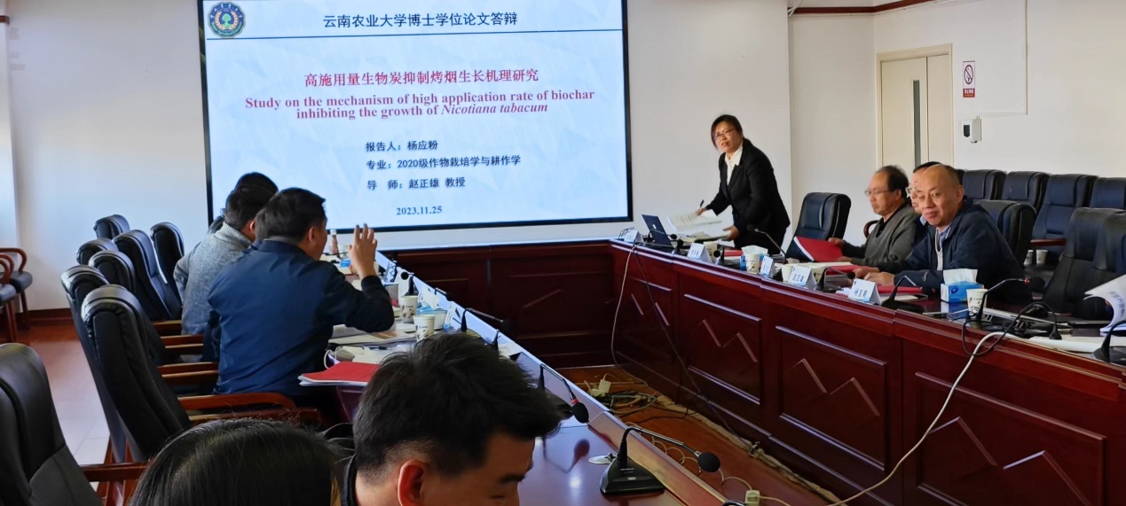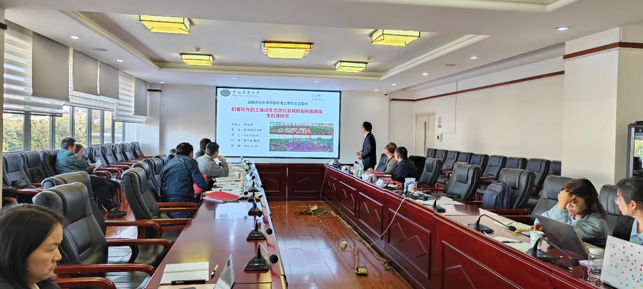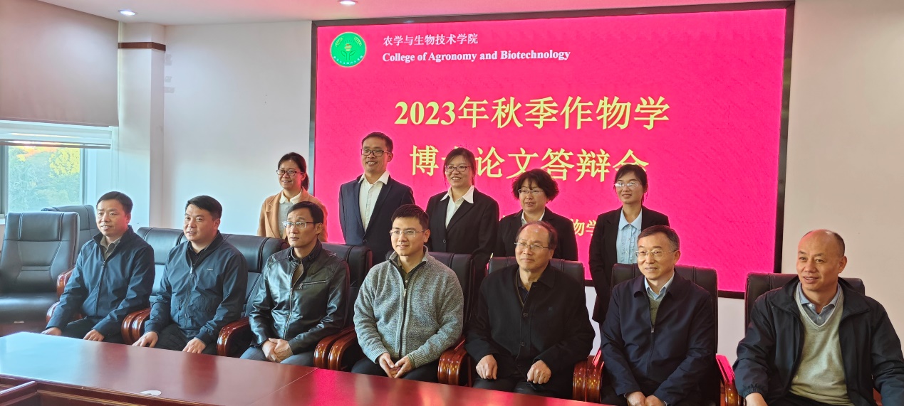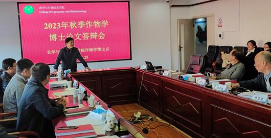 本站消息:2023年11月25日,2023届作物学博士研究生学位论文秋季答辩会在云南农业大学西校区至诚楼424会议室举行。答辩专家委员会主席由云南大学黄斌全研究员担任,专家组成员包括中国林业科学院高原林业研究所杨汉奇研究员,云南省农业科学院唐开学研究员、陈璇研究员,云南农业大学赵正雄教授、郭华春教授、范伟教授。作物学博士授权点负责人陈军文教授主持会议。