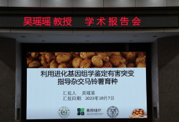 本站消息 2023年10月7日下午,南京农业大学吴瑶瑶教授,应邀来学校“红土地”大讲堂作题为“利用进化基因组学鉴定有害突变从而指导杂交马铃薯育种”的报告。报告会由副校长、云南种业创新研究院院长杨生超主持,全校生物类专业相关师生120多人参加报告会。