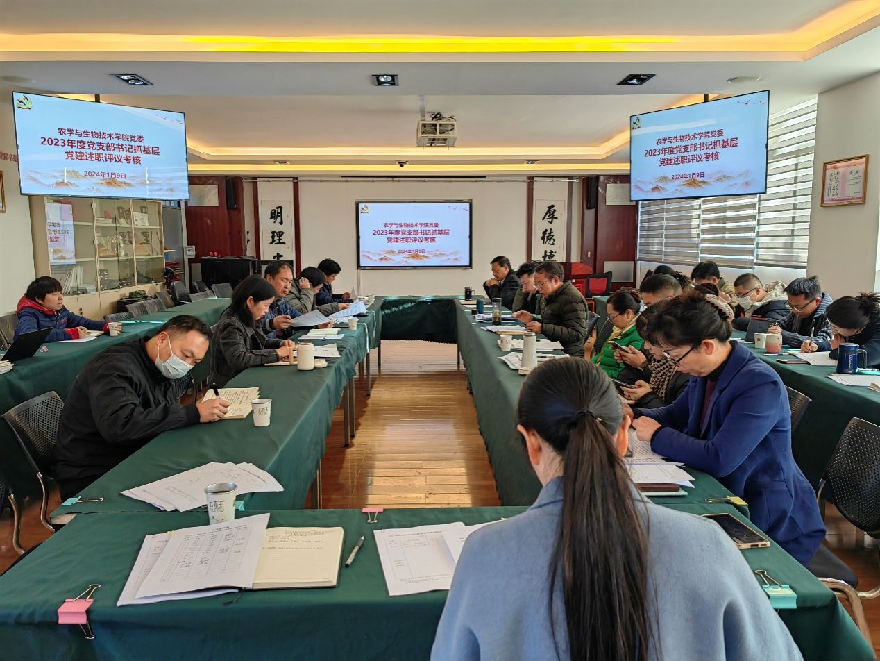 为加强党的基层组织建设、促进工作有效开展,本着总结经验、发现问题、制定措施、纠正不足的宗旨,2024年1月9日,437437必赢国际网址党委在尚农楼304会议室召开了2023年度党支部书记述职评议考核会议。会议由学院党委书记李富生主持,党委委员、党政办公室主任、各党支部书记、党员和群众代表等参加会议,组织部王寅同志到会指导工作。
