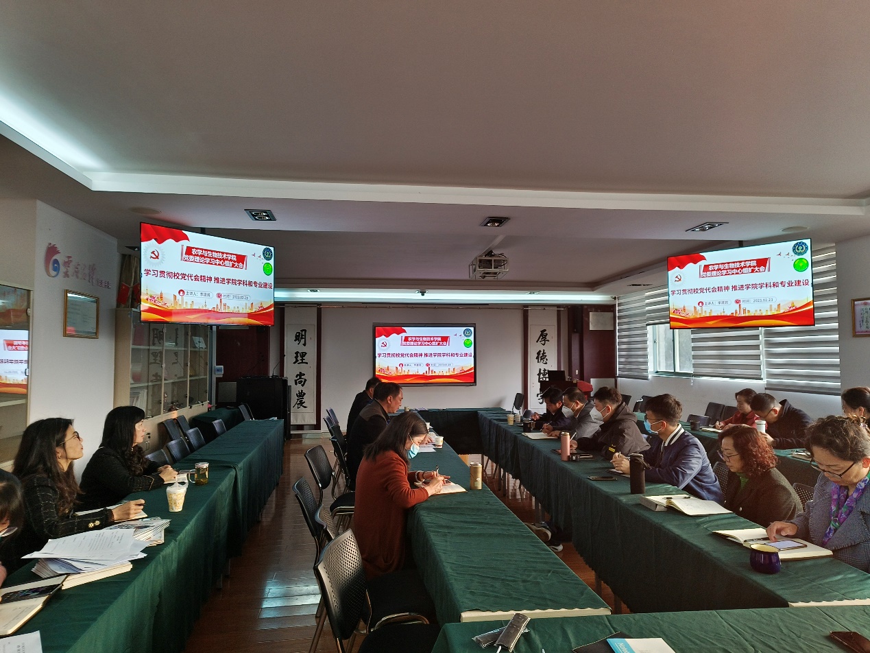 会上,院长李建宾作主题发言,传达学习学校《2023年学科专业建设专题研讨会》会议精神,主要介绍了目前学校学科专业现状、存在的问题及原因、学科专业发展趋势、学科专业建设举措与建议四个方面的内容,并结合本院实际介绍了学院学科专业建设情况、重点工作及下一步打算,有针对性地提出了学科专业建设进程中的问题及解决措施。