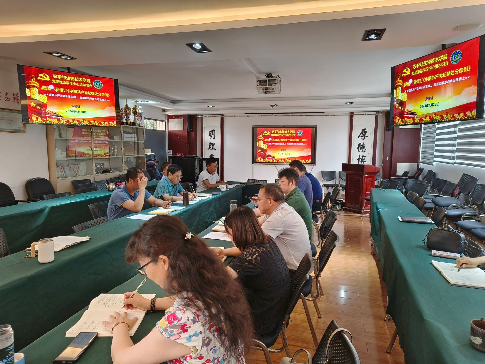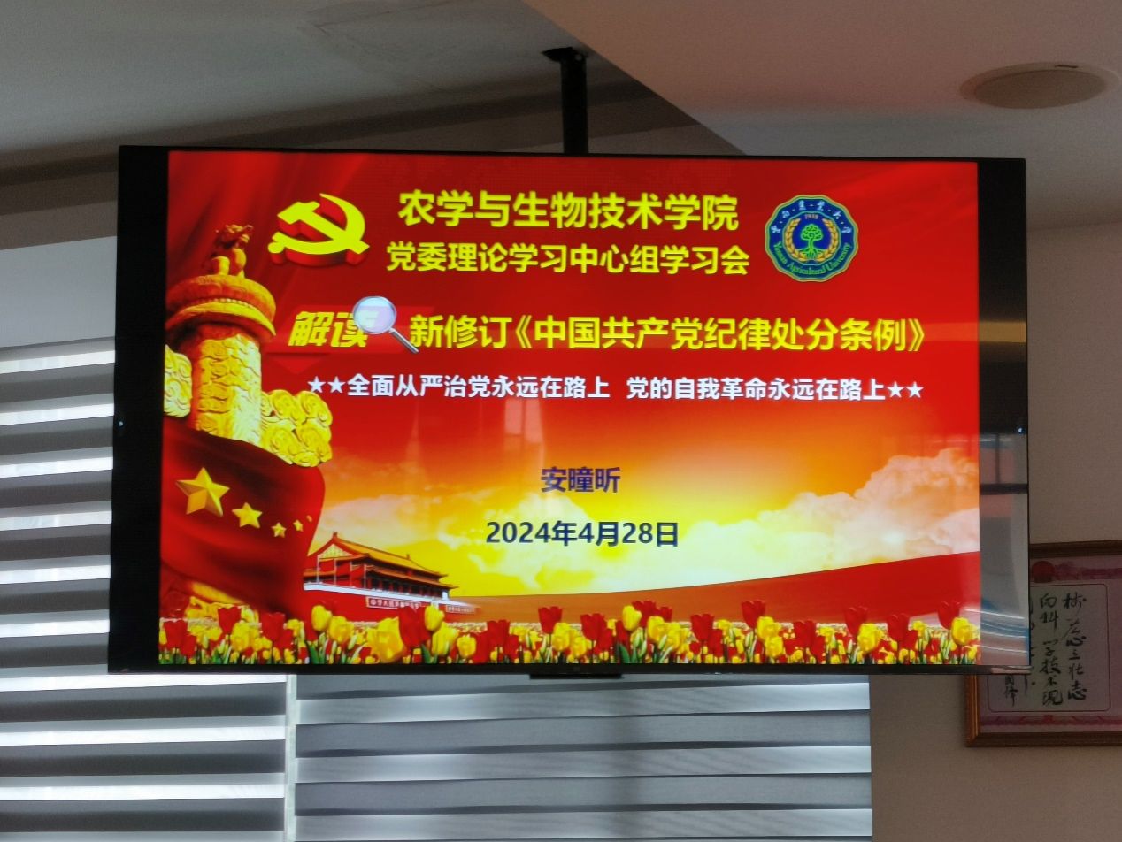 按照《中共云南农业大学委员会关于在全校党员中开展党纪学习教育工作方案的通知》(校党发〔202433 号)精神,以学习贯彻新修订《中国共产党纪律处分条例》(以下简称《条例》)为契机加强纪律教育,428日,院党委理论学习中心组(扩大)以“解读新修订的《条例》”为主题开展2024年第三次集体学习会议。会议由学院党委副书记、院长李建宾主持,党委委员、领导班子、各党支部书记、各系、所、中心负责人参加学习。
