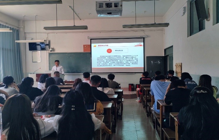 大会上,同学们集中学习习近平总书记给云南大学一百周年校庆的致信。总书记给云南大学的贺信为我们青年指明了新的奋斗目标,我们要以习近平新时代中国特色社会主义思想为指引,刻苦钻研专业知识,完善知识结构,强化技能训练,把论文写在大地上,把热血挥洒于乡村振兴的主战场。