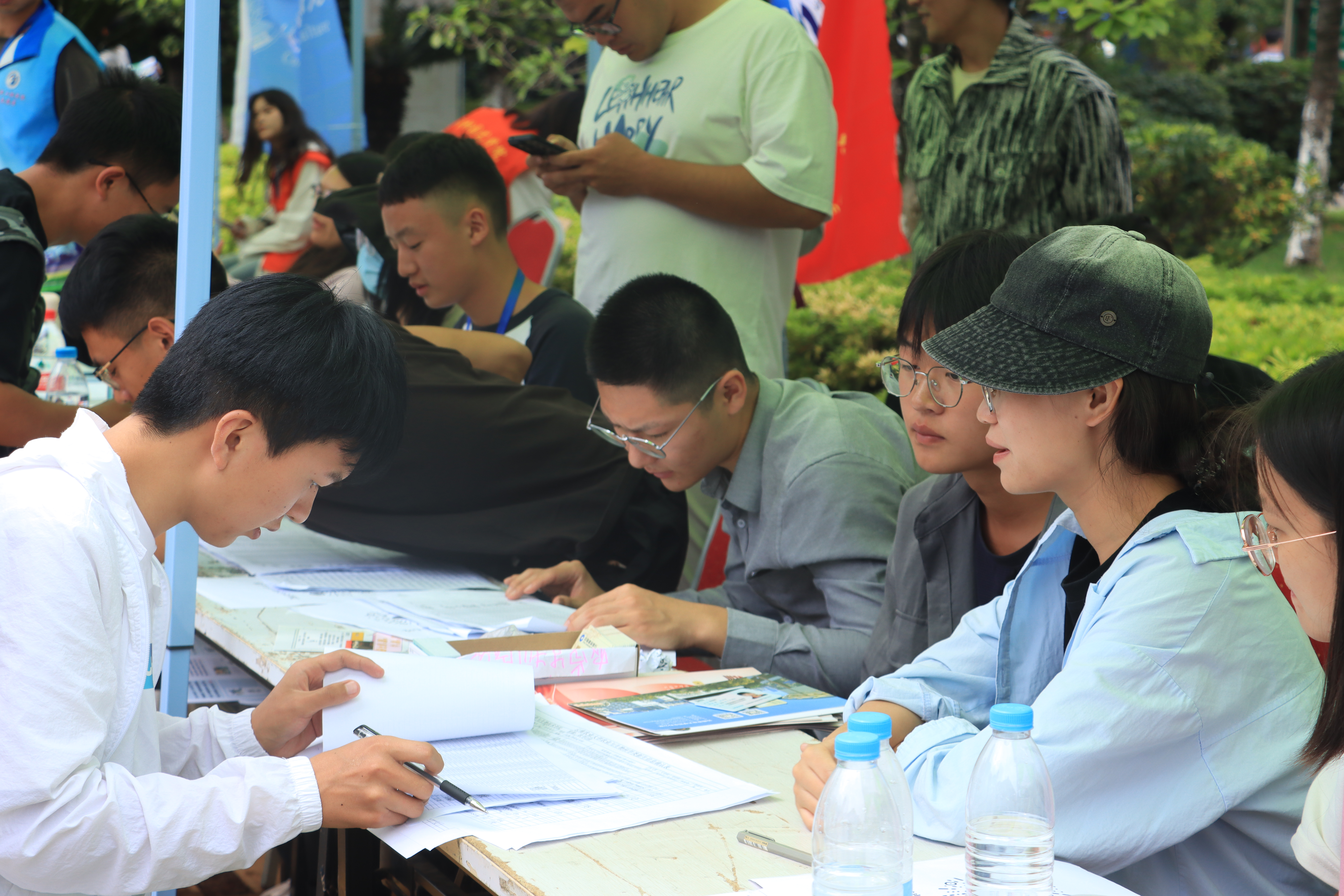 焕然一新的校园,处处是温暖的问候,处处是惊喜的瞬间。踏入校门,志愿者们热情地接过学弟学妹们的行李,带领他们来到报到区,办理入学手续。在学生服务点,必赢负责迎新的老师和同学们正紧锣密鼓的安排迎新流程,他们各司其职,在自己的岗位上勤奋的工作着,为新生们保驾护航。为保障后勤工作,学院为志愿者们提供了饮用水和爱心餐。