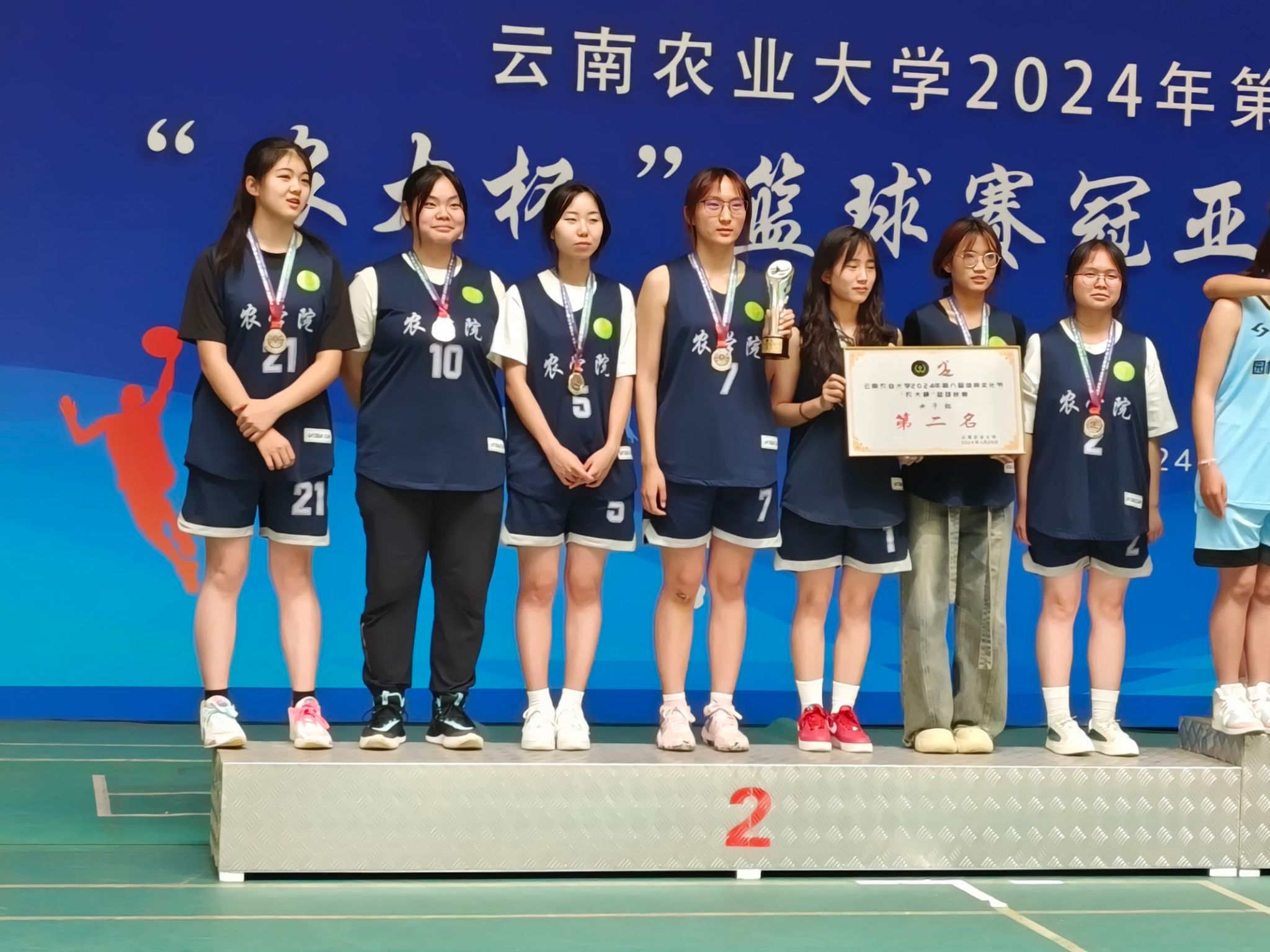 春樱怒放,蓝楹争辉。2024年4月15日-24日,必赢推选出男、女各一支参赛队伍,参加2024年校级“农大杯”篮球比赛,取得了令人骄傲的成绩。女队勇夺第二名,男队夺得第五名的佳绩,展示了必赢学生的团队精神和实力,彰显了必赢学生优良的体育精神和体育竞技能力!